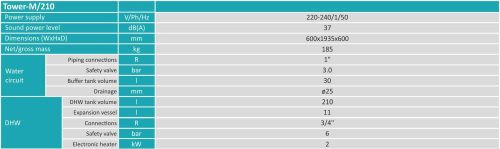 Tower-M/210 are intended for installation with Centrometal monobloc heat pumps with working medium R32 or R290. The Tower-M/210 unit consists of a stainless steel DHW tank, storage tank, direct heating circuit pump, regulation for Centrometal heat pumps and expansion tank for DHW. All components are located in a compact housing with floor plan dimensions of 600×600 mm, the same space as the washing machine next to which it is usually installed in apartments, which takes up minimal space. In combination with a monobloc heat pump, this unit can replace any type of boiler or work in combination with it, in an integrated hybrid system. Tower-M/210 is a very practical and efficient solution for apartments and houses, providing optimal comfort while saving space.
