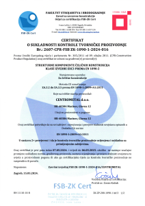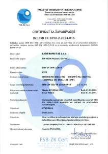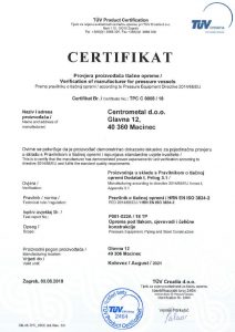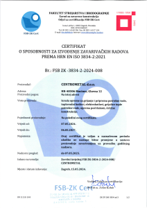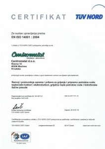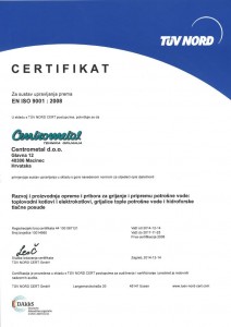 Kvalitetu proizvoda i poslovanje tvrtke garantira i osigurava uveden sustav osiguranja kvalitete ISO 9001:2008, a plasman na mnoga tržišta Europe osiguravaju certifikati o sukladnosti izdani od ovlaštenih domaćih i međunarodnih institucija, koje posjeduje svaki proizvod tvrtke “Centrometal”.
