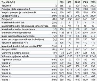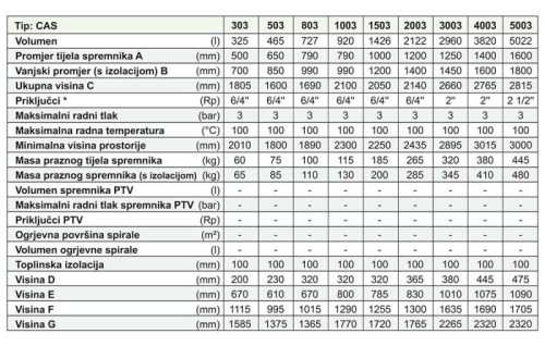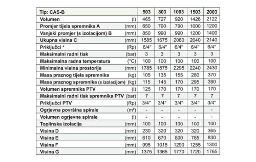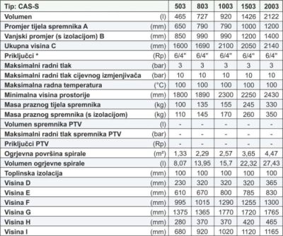 PRIJEDLOG ODABIRA VELIČINE SPREMNIKA CAS: