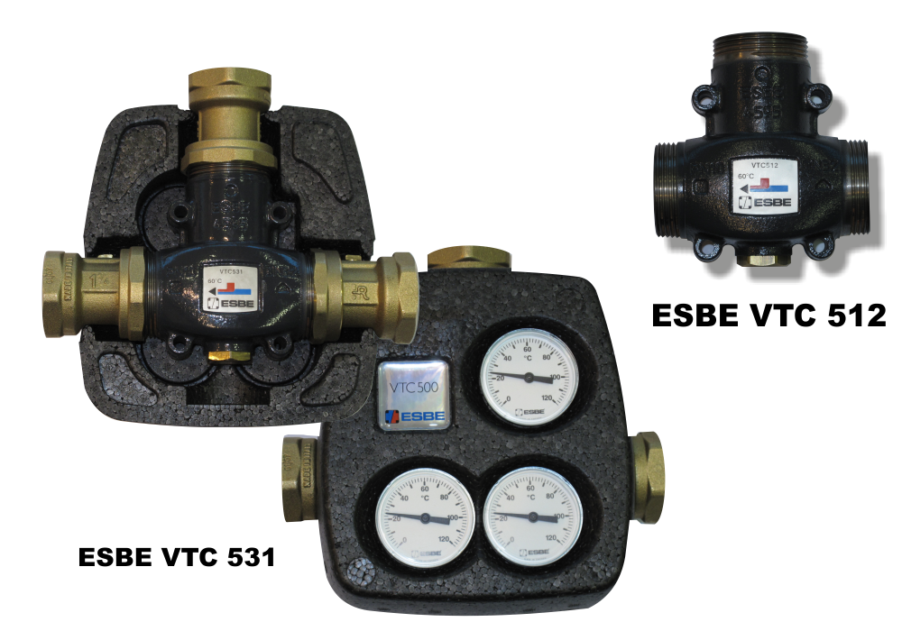 Troputni termostatski ventili ESBE VTC 512 i 531 namijenjeni su za ugradnju u sustave centralnog grijanja uz kotlove na kruto gorivo (Bio-Tec, BioSolid, EKO-CK P, EKO-CKB P, CentroPlus, -/B…) i akumulacijske spremnike CAS, a sve iz razloga zaštite kotlova od kondenzacije vodene pare iz dimnih …